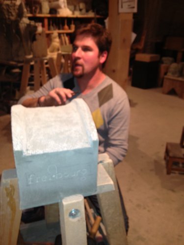 Création d'un symbol en molasse pour notre association dans l'atelier du sculpteur Marc Bucher en basse-ville à Fribourg.